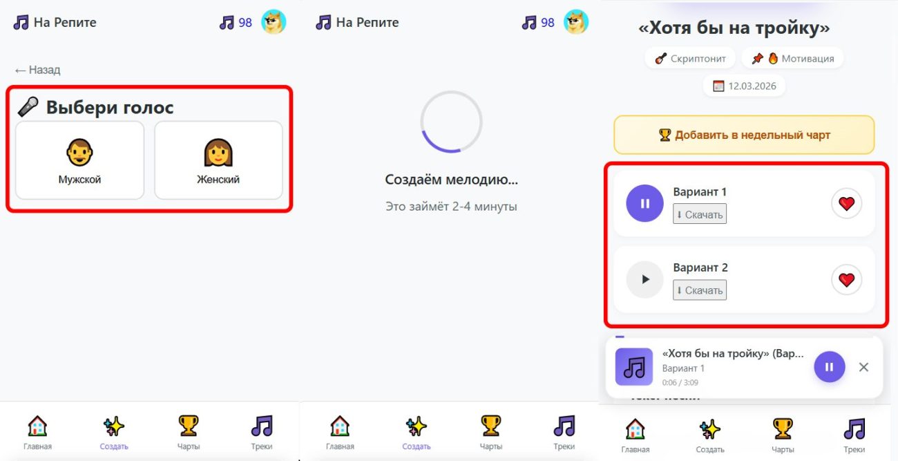 Разберём два пути — через «На Репите» для тех, кто хочет максимально просто и без технических сложностей, и через Suno AI для тех, кто готов разобраться с промптами и зарубежным сервисом.